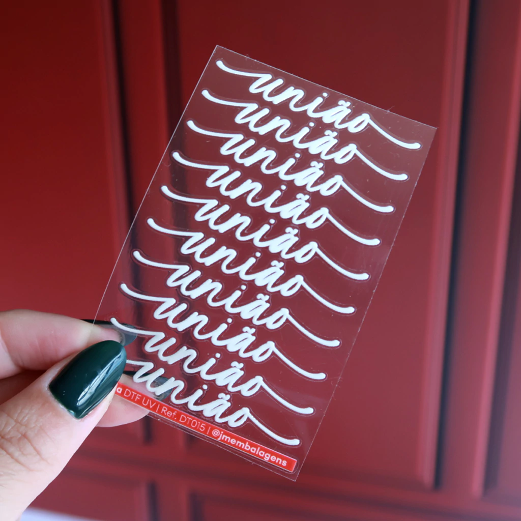 DTF UV (ou UV DTF) é uma técnica moderna de personalização por transferência adesiva com cura UV, usada principalmente para aplicar imagens e adesivos de alta qualidade em superfícies lisas, como vidro, acrílico, plástico, metal e papelão.