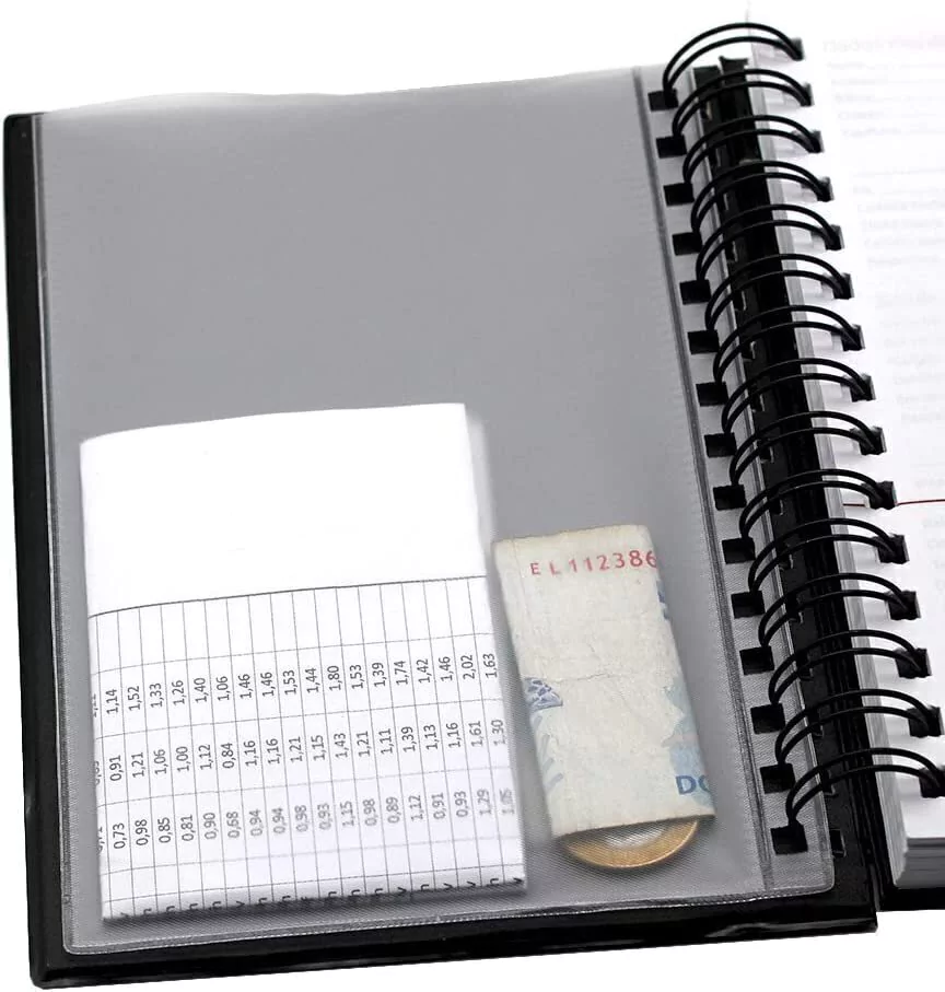 O envelope Canguru é encadernado como se fosse uma folha da agenda ou do caderno. Tem uma abertura superior que serve para guardar papéis, documentos e etc..