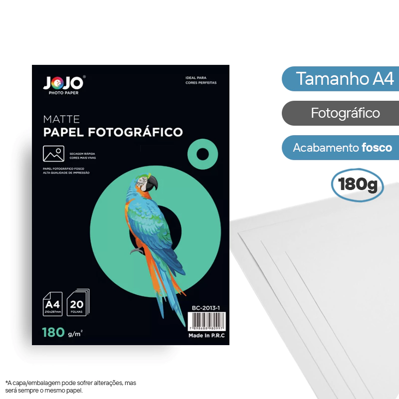 Papel com alta resolução, qualidade fosca (matte). Indicado apenas para impressoras jato de tinta.