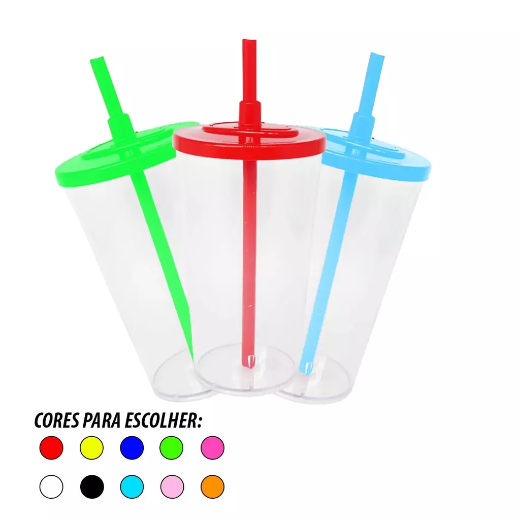 Copo Twister 500ml com tampa e canudo.