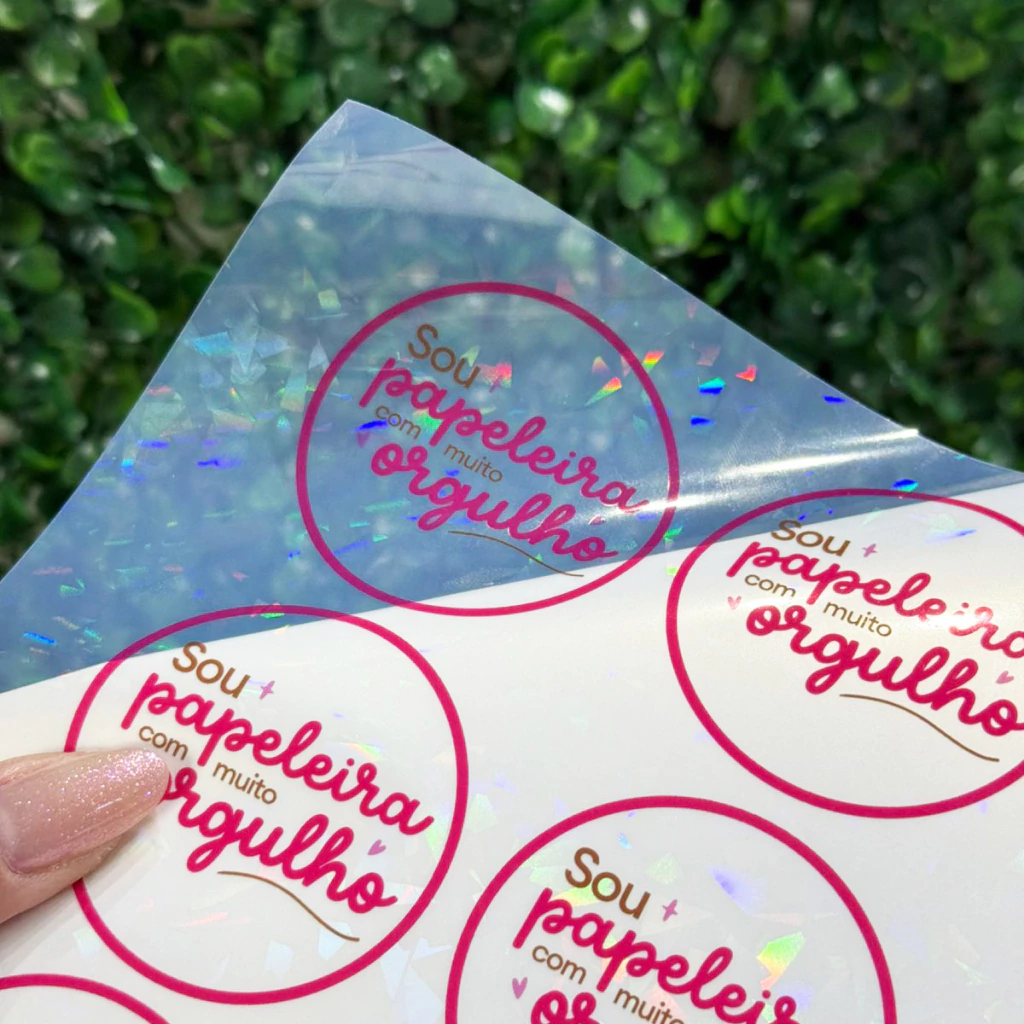 Transforme suas criações com o vinil adesivo semi-transparente holográfico caquinhos! Com secagem instantânea e resistente à água, esse pacote com 05 folhas no formato A4 (210mm x 297mm) oferece um toque mágico a qualquer projeto. Ideal para personalizar objetos, embalagens e mais, garantindo estilo e durabilidade. Inspire-se e crie!